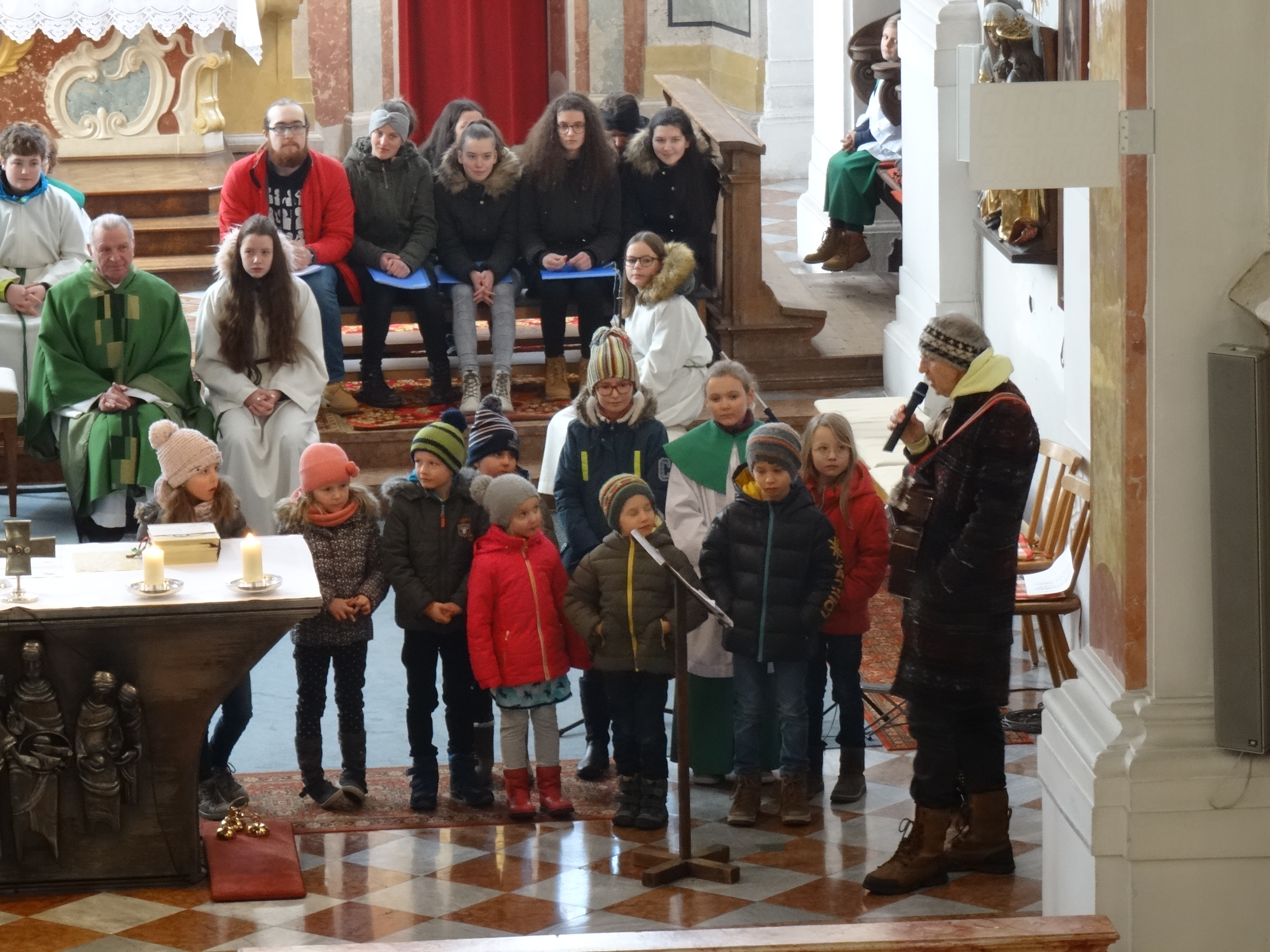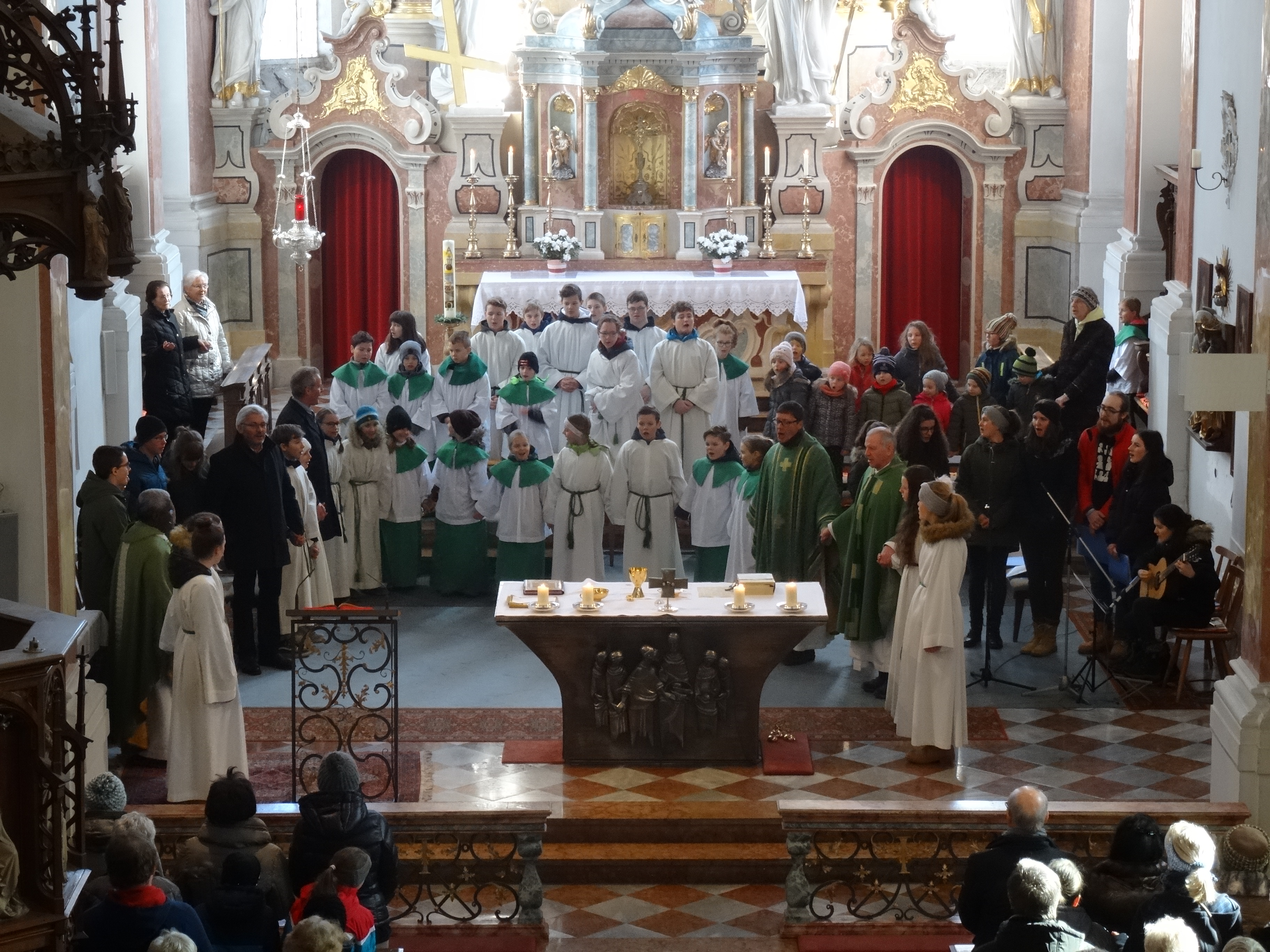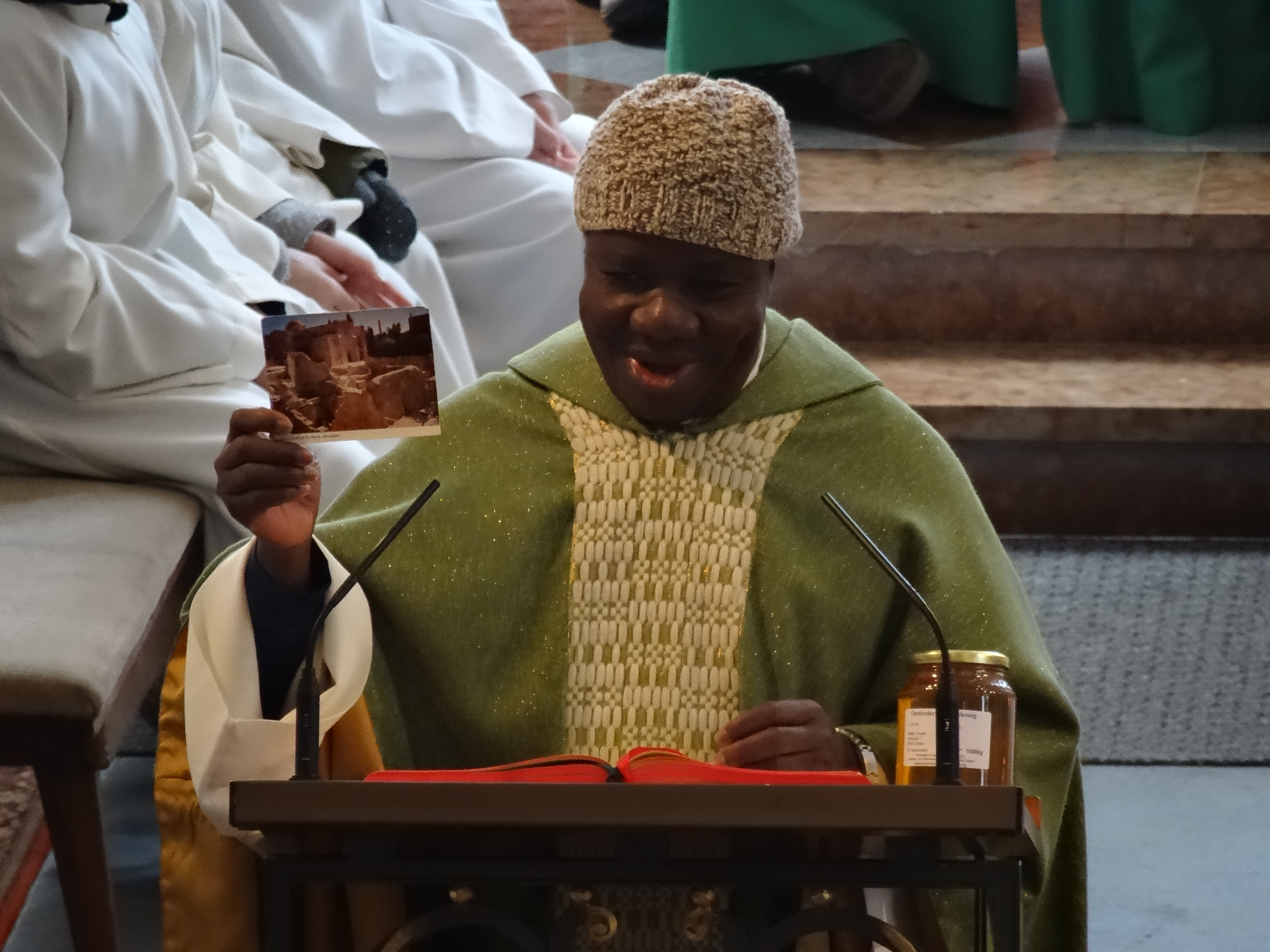 Es war eine sehr emotionale Feier in der vollen Pfarrkirche. Pfr. Franz überreichte Honig als Stärkung für den weiteren Weg. Walter Schneiders Sternschnuppen überreichten mit sinnigen Sprüchen allerlei Brauchbares. Zum Abschluss der Messe ließen sich viel von Jean Paul segnen bzw. sprachen ihm den Segen zu.